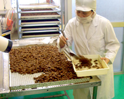 新鮮な素材に独自の配合で作ったスパイスで味付け後、乾燥室で乾燥させていきます。味付け・乾燥・検品